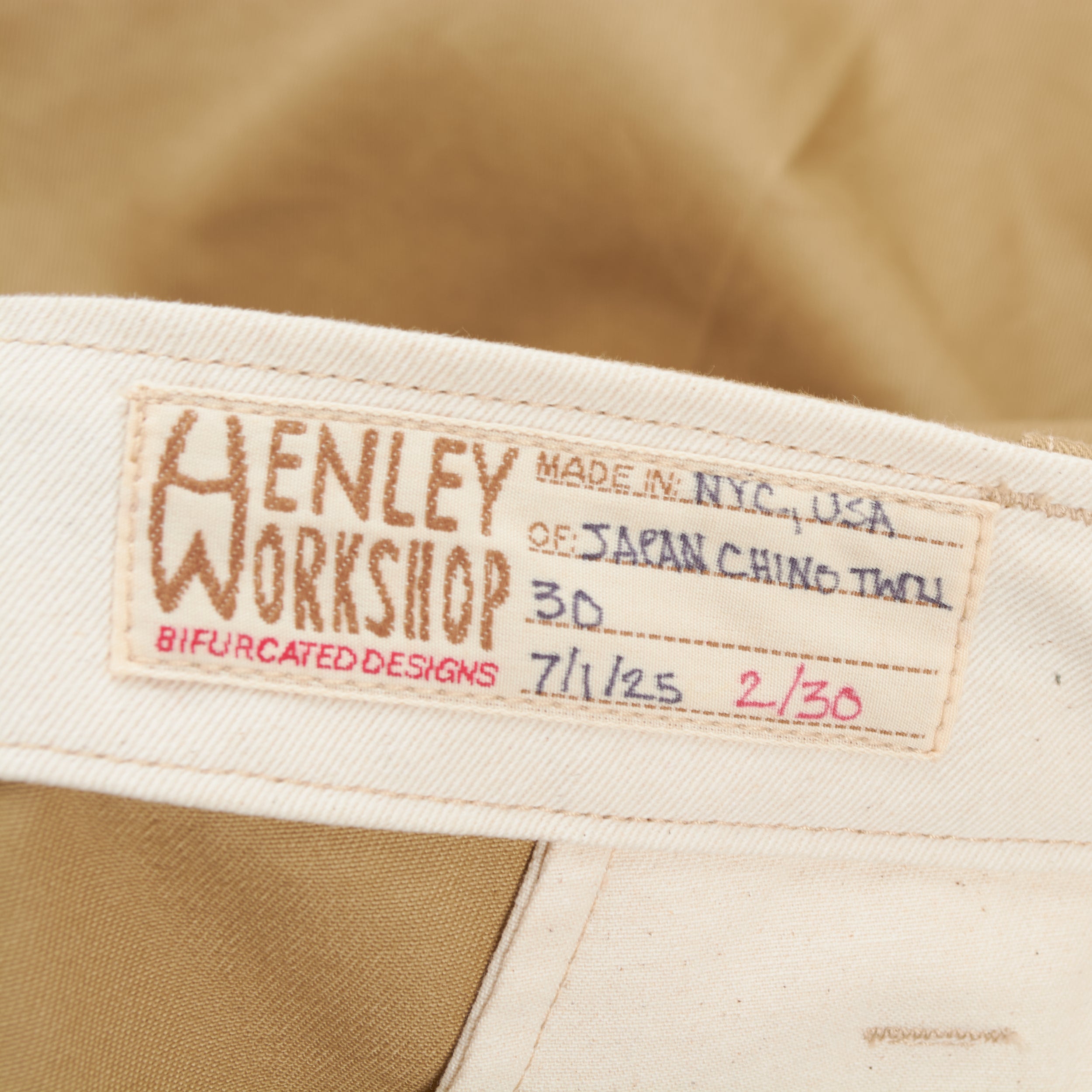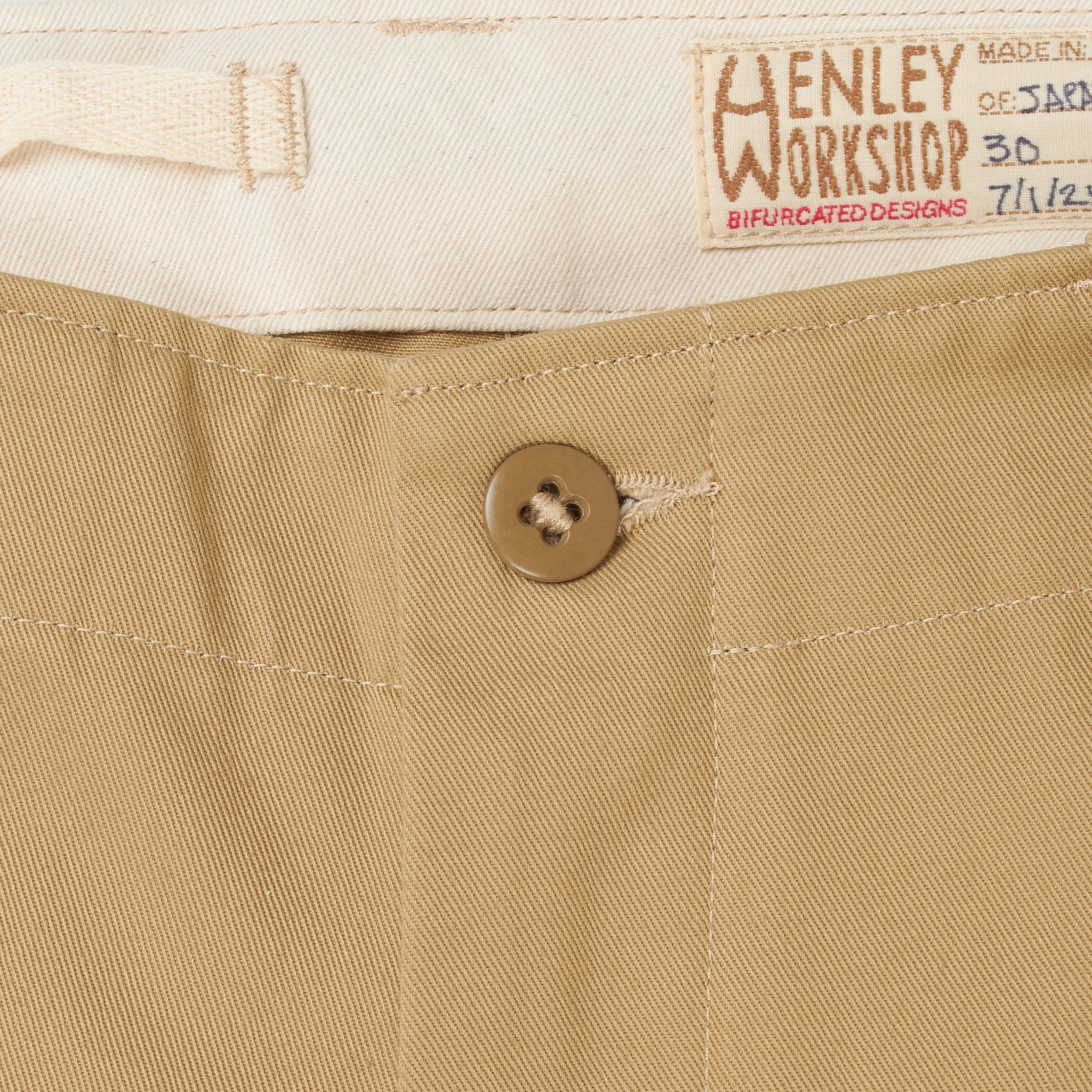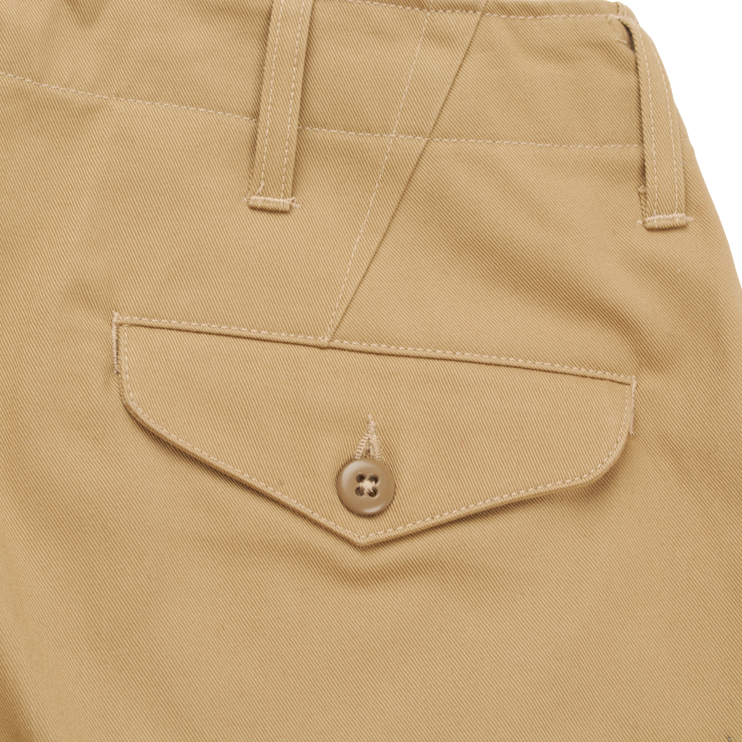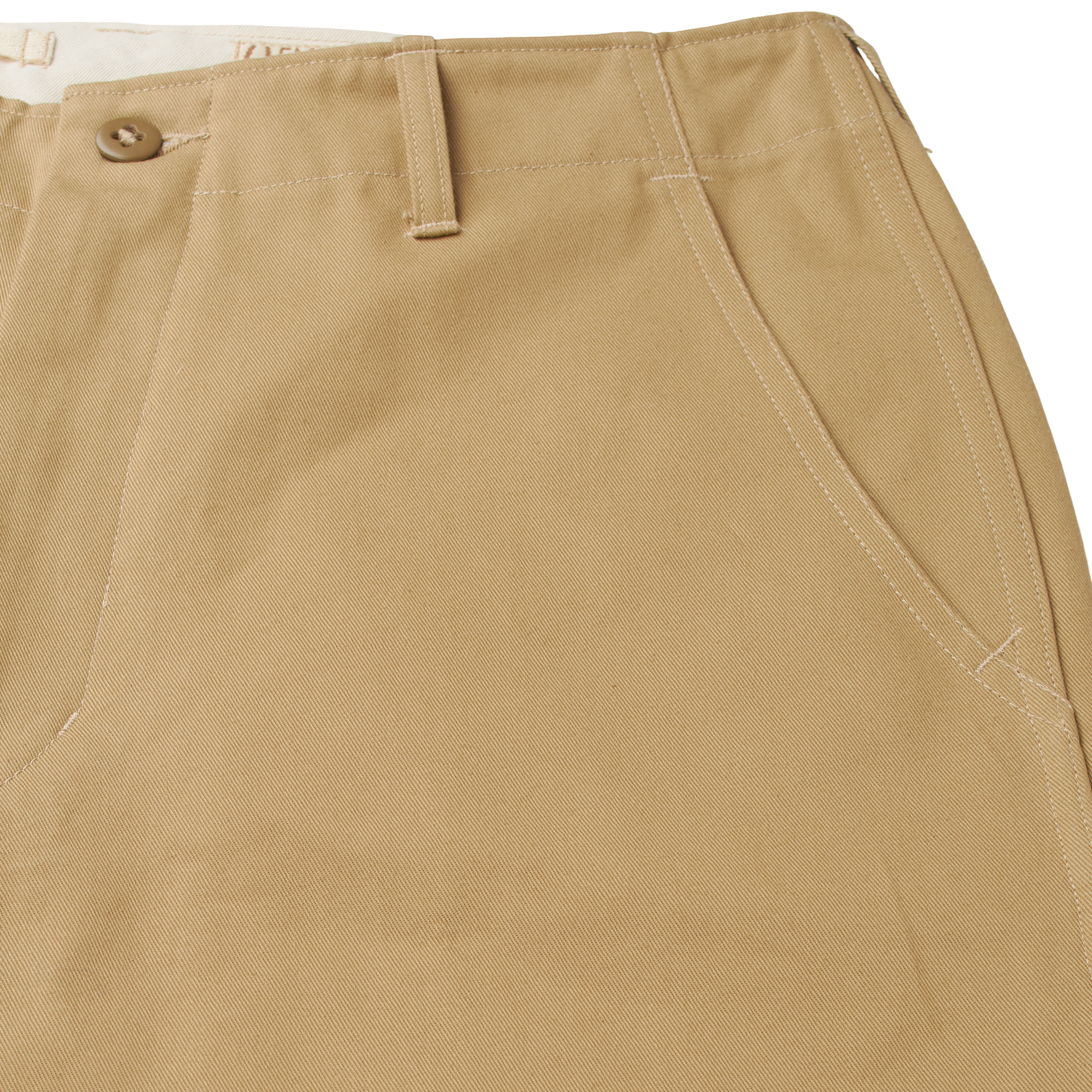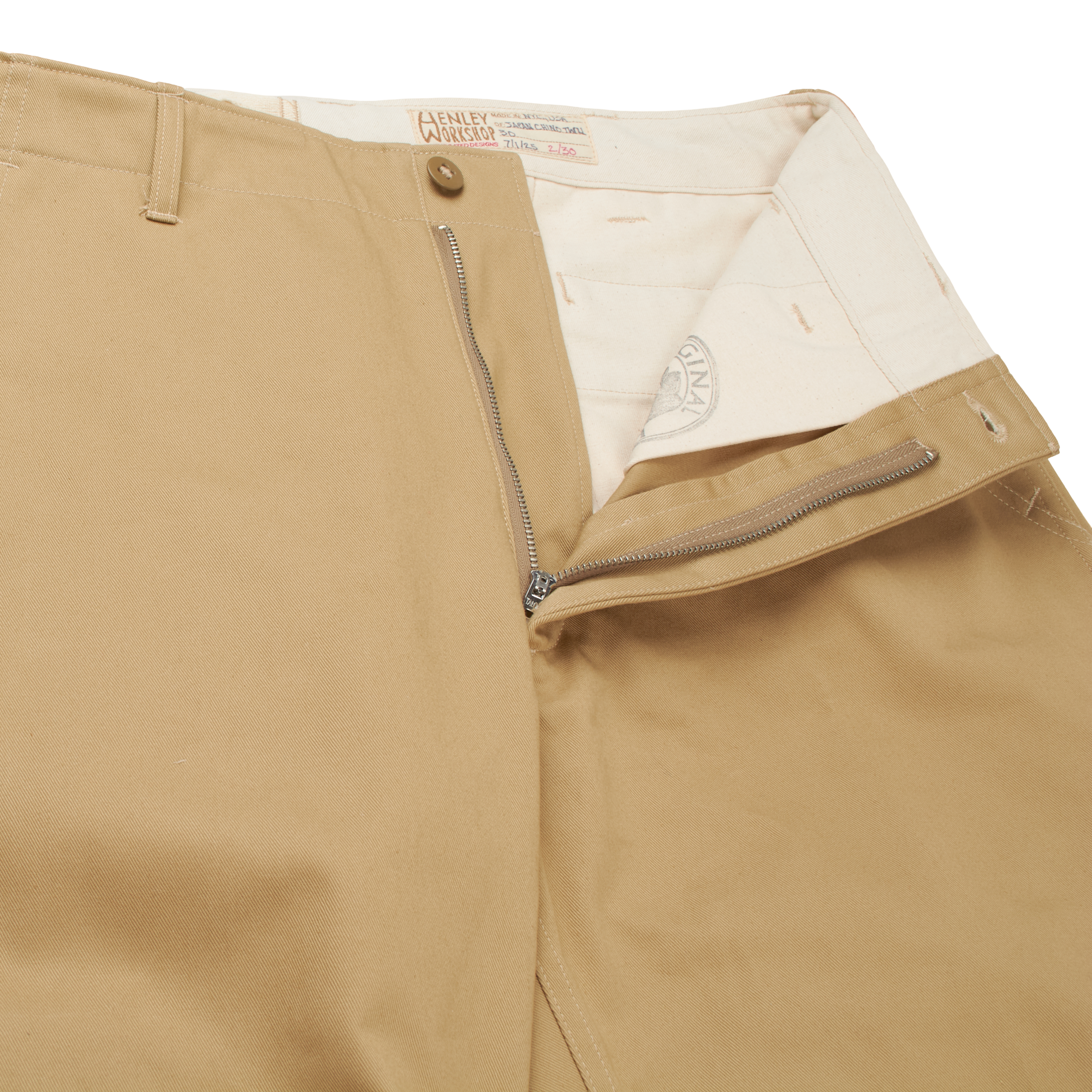 Made with subtle nuances that make for a better (and more labor intense) product, such as round corners in pocket bags that prevent items getting stuck in corners, lightly brushed waistband, clean finished fly facings, etc...