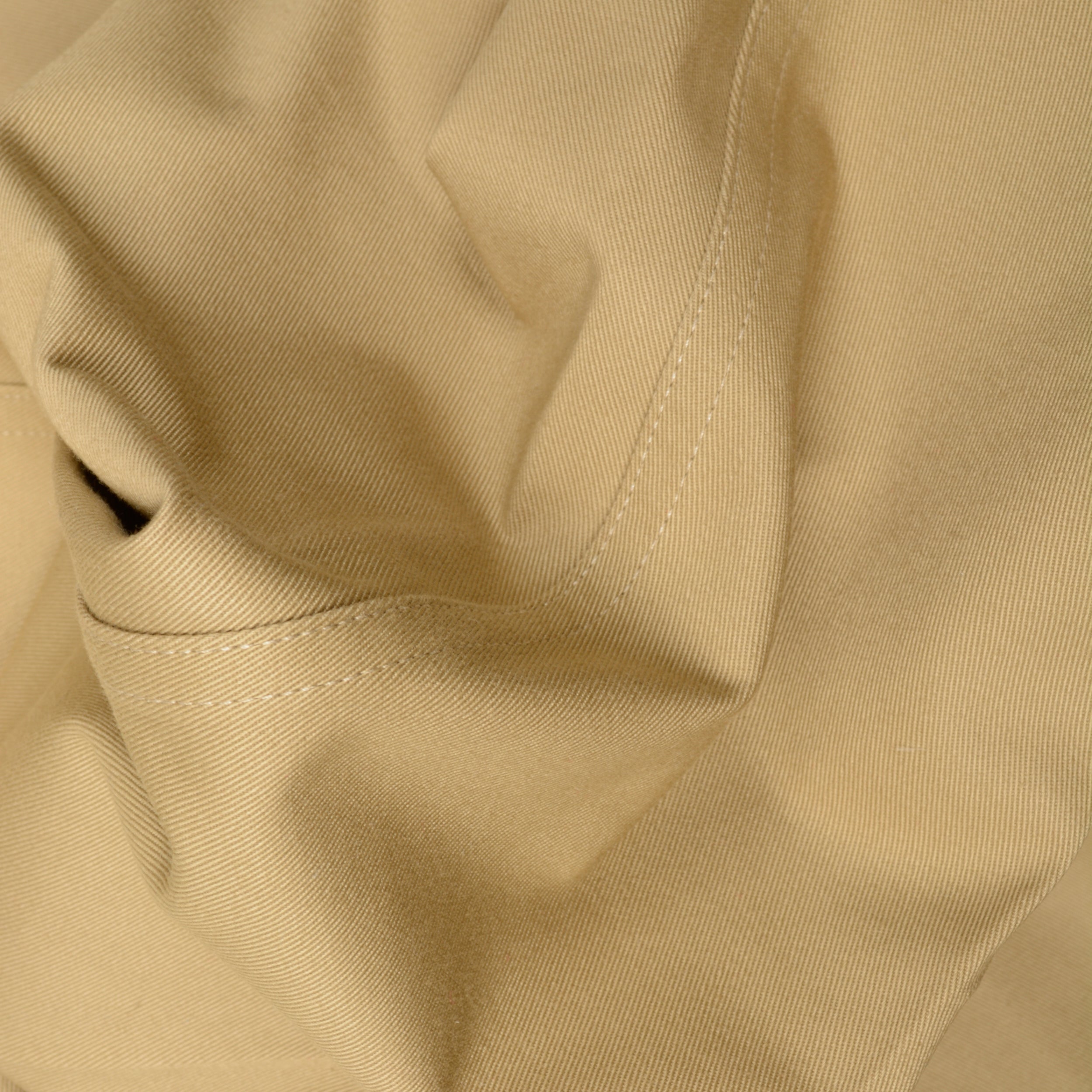 A compact twill, imported from Japan, that we've nicknamed "Rhino Cloth" due to it's durability and robustness. We sampled MANY, MANY fabrics to land on this one, which was chosen because of it's defined twill line, and natural look, which is created using a blend of combed and open ended cotton yarns. Because of the extra yarns in the weft of the fabric it has a slight "body" and holds it's shape compared to looser woven fabrics that are often floppy and limp.